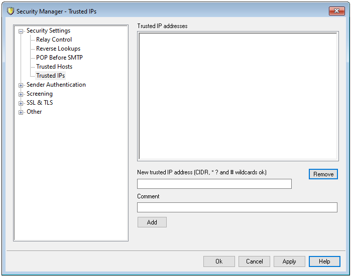 IPs listed here will be considered by MDaemon to be part of the local area network (LAN). - Site Policy