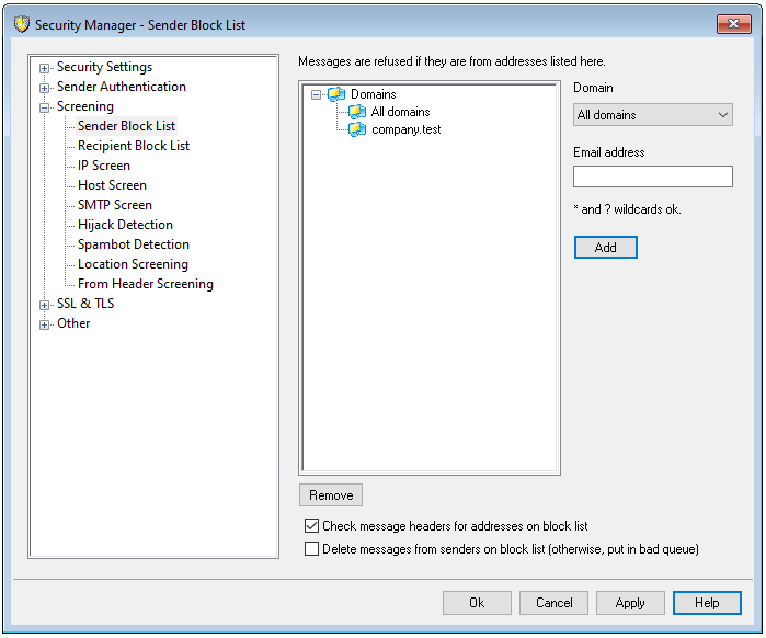 Local domains and/or addresses should not normally exist on this list - IP Screen