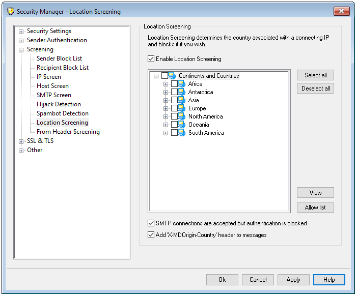Use this feature to disable SMTP/IMAP/POP connections from unauthorized regions of the world.