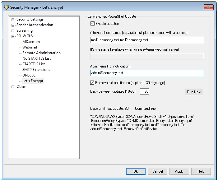 This menu is used to generate and apply a valid certificate using MDaemon and Let's Encrypt. See the article below for assistance setting one up in MDaemon.