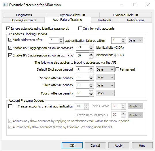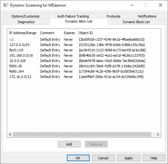 Exempt IP addresses or ranges. Default settings are pictured below.