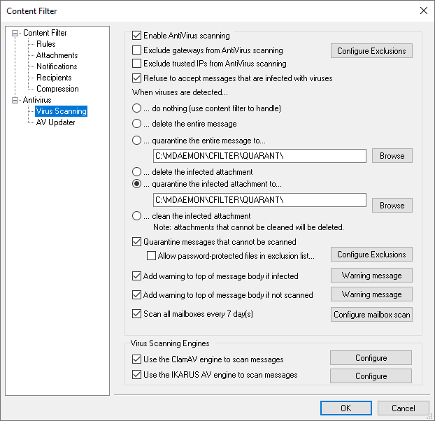 The following are general recommendations for configuring MDaemon's security, spam, and antivirus features provided by MDaemon AntiVirus.